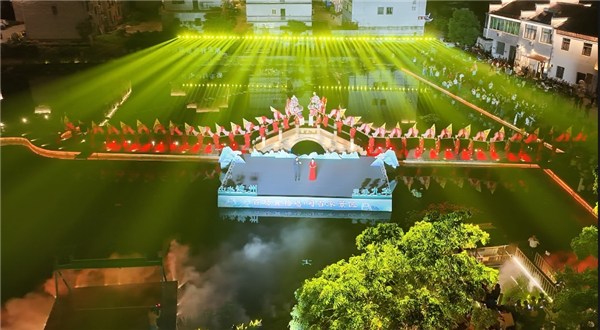 相逢桥上无非客,行尽江南都是诗。10月17日晚,“百场黄梅唱响百家景区”九华山风景区省级示范展演在池州市九华山风景区九华乡老田村精彩上演。本次活动由安徽省文化和旅游厅、池州市人民政府主办,池州市文化和旅游局承办,池州市文化馆、九华山文化旅游处共同实施,各县区文化和旅游局、九华乡人民政府协办,省文旅厅二级巡视员张兵、市政协副主席石兴江出席活动,与现场近1000名群众、游客共同观看演出。国家公共文化云、安徽公共文化云、新华网安徽频道、凤凰网安徽、池州新闻视频号、池州文化旅游抖音号等平台现场直播,线上观看人次达337.6万。